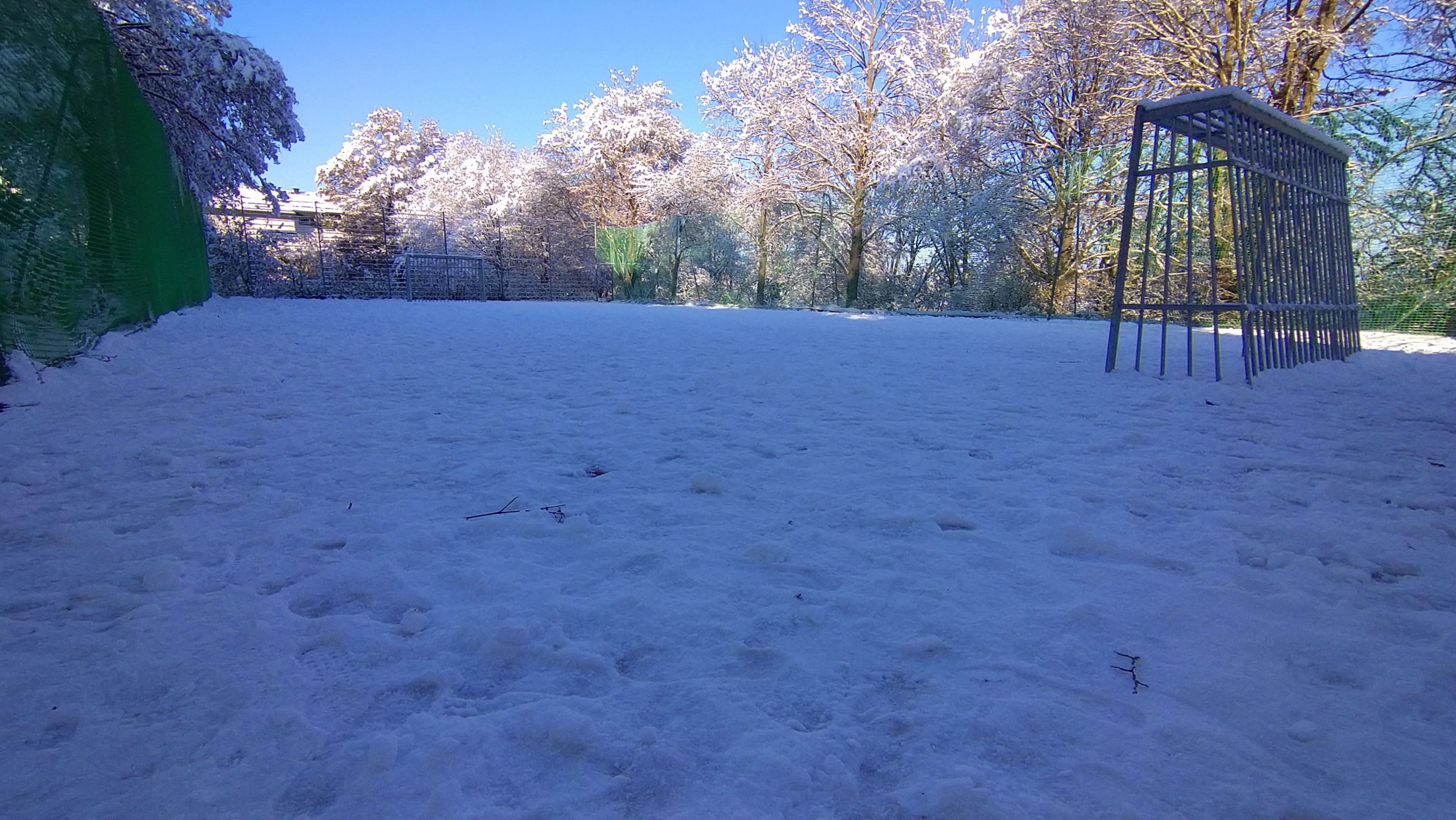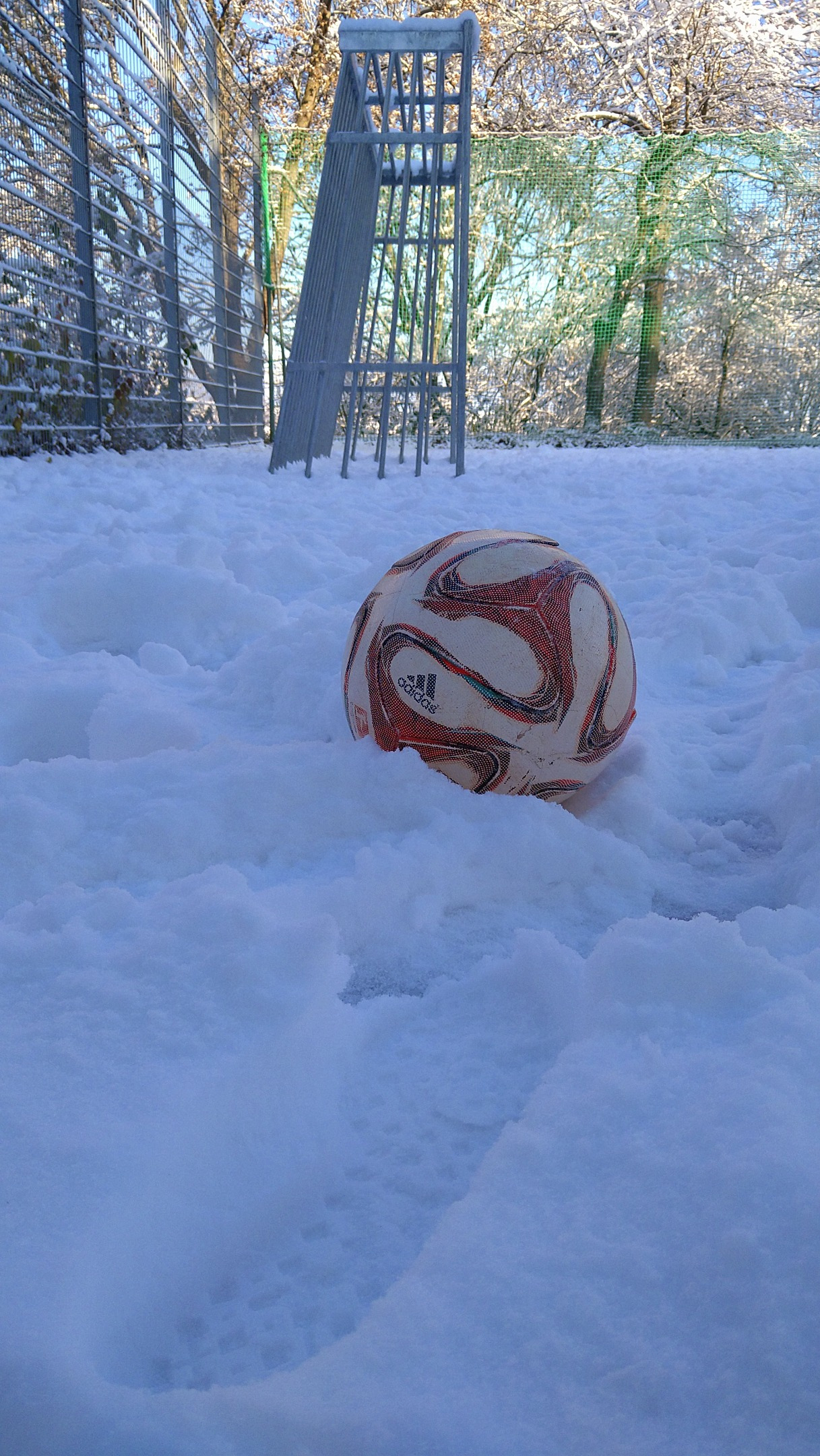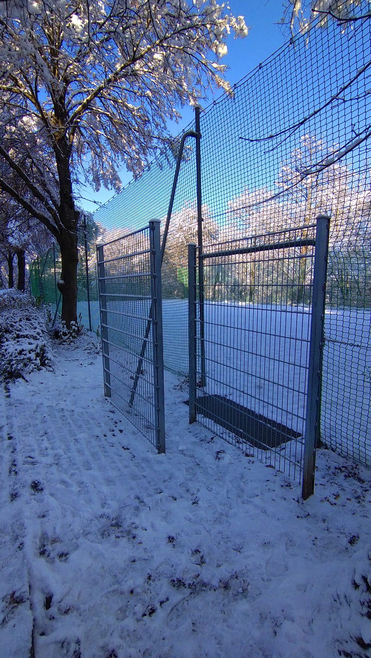 kaum wurde der JahresKalender auf Dezember umgestellt, fielen die ersten SchneeFlocken vom Himmel & zum SonntagsKicK war der sonst so rote Untergrund komplett weiß - dies veranlasste die Mannschaft zu einer SpielPause, um jeglicher Art von VerletzungsGefahr aus dem Weg zu gehen...unser Platzwart war trotzdem um 10:00 aufm Gelände & musste feststellen das der Court griffiger als zu manch anderer WetterLage war, zwar konnte der Ball nachm aufprallen usw. kaum kontrolliert werden, doch n BENZ wäre sicher einzigartig gewesen...vielleicht beim nächsten WhiteTartan !?