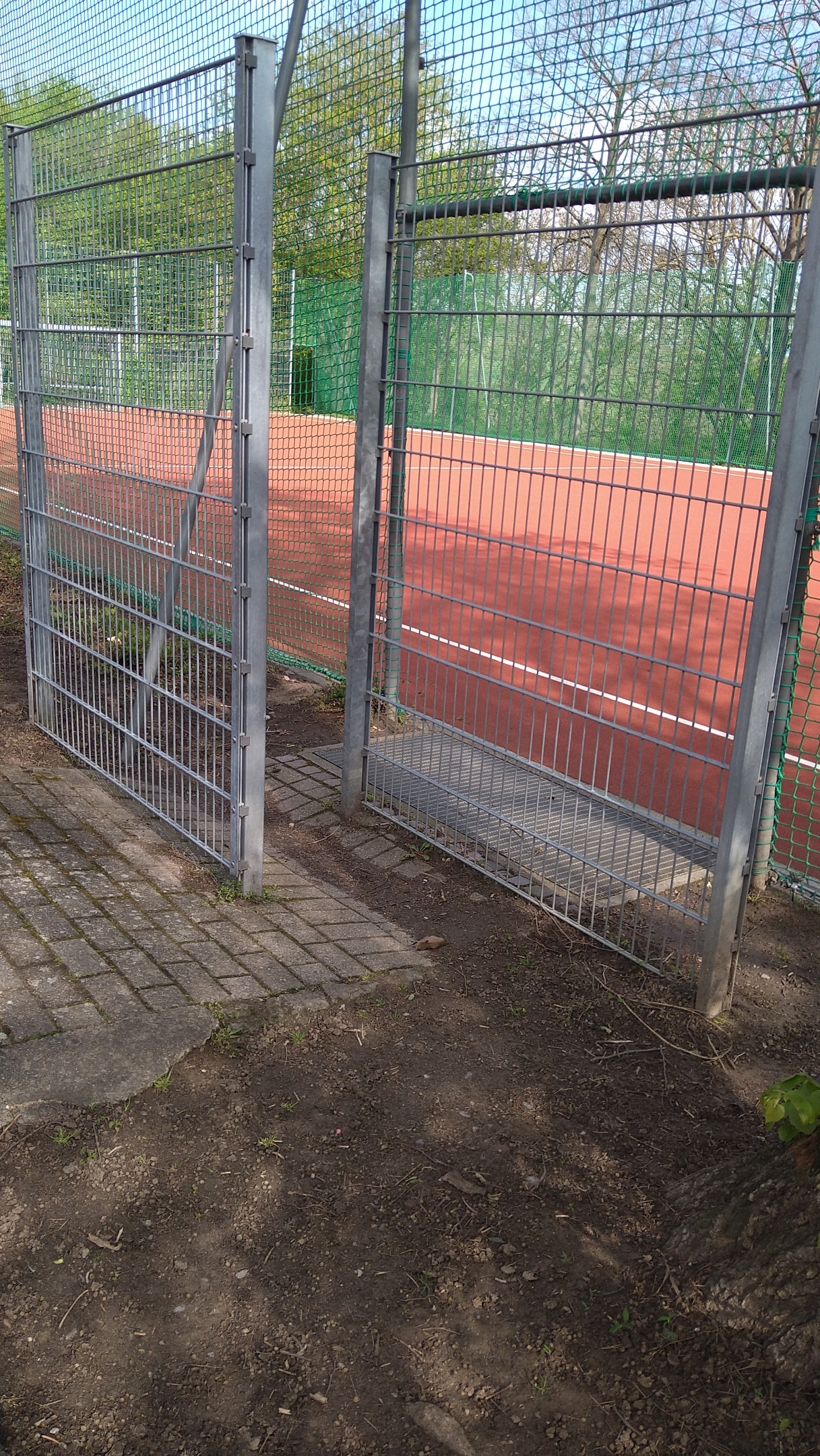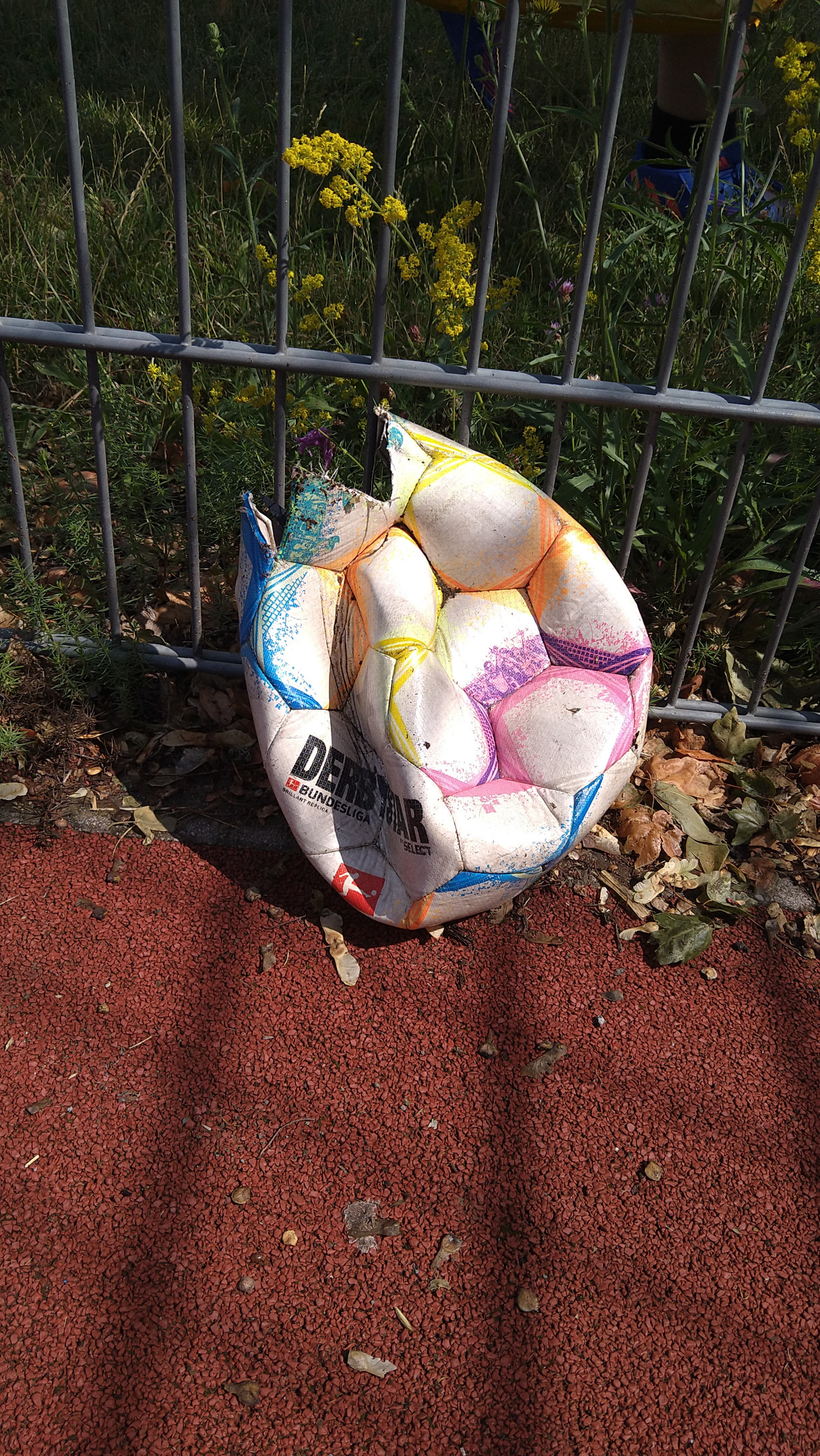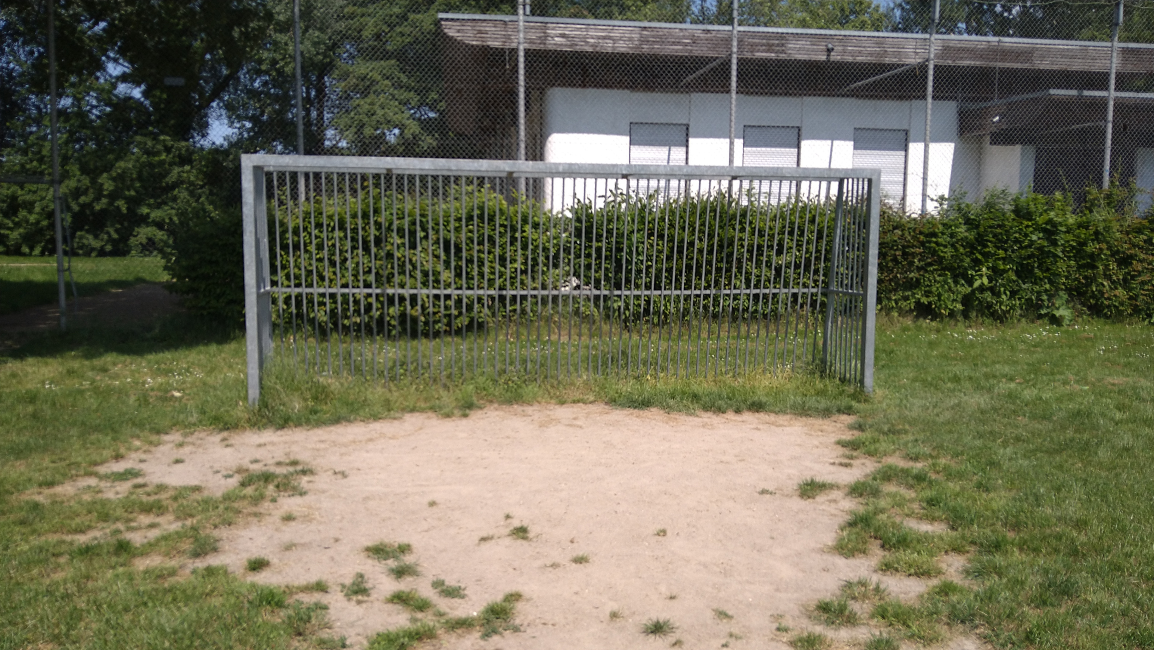 Öffnung Richtung EckFahne am AußenZaun, musste man des öfteren in die Büsche & Richtung GlemsTal, um das SpielGerät wiederzufinden. Abhilfe schaffte dann die eigens entwickelte Holz-und TaschenTechnik by BWK!
