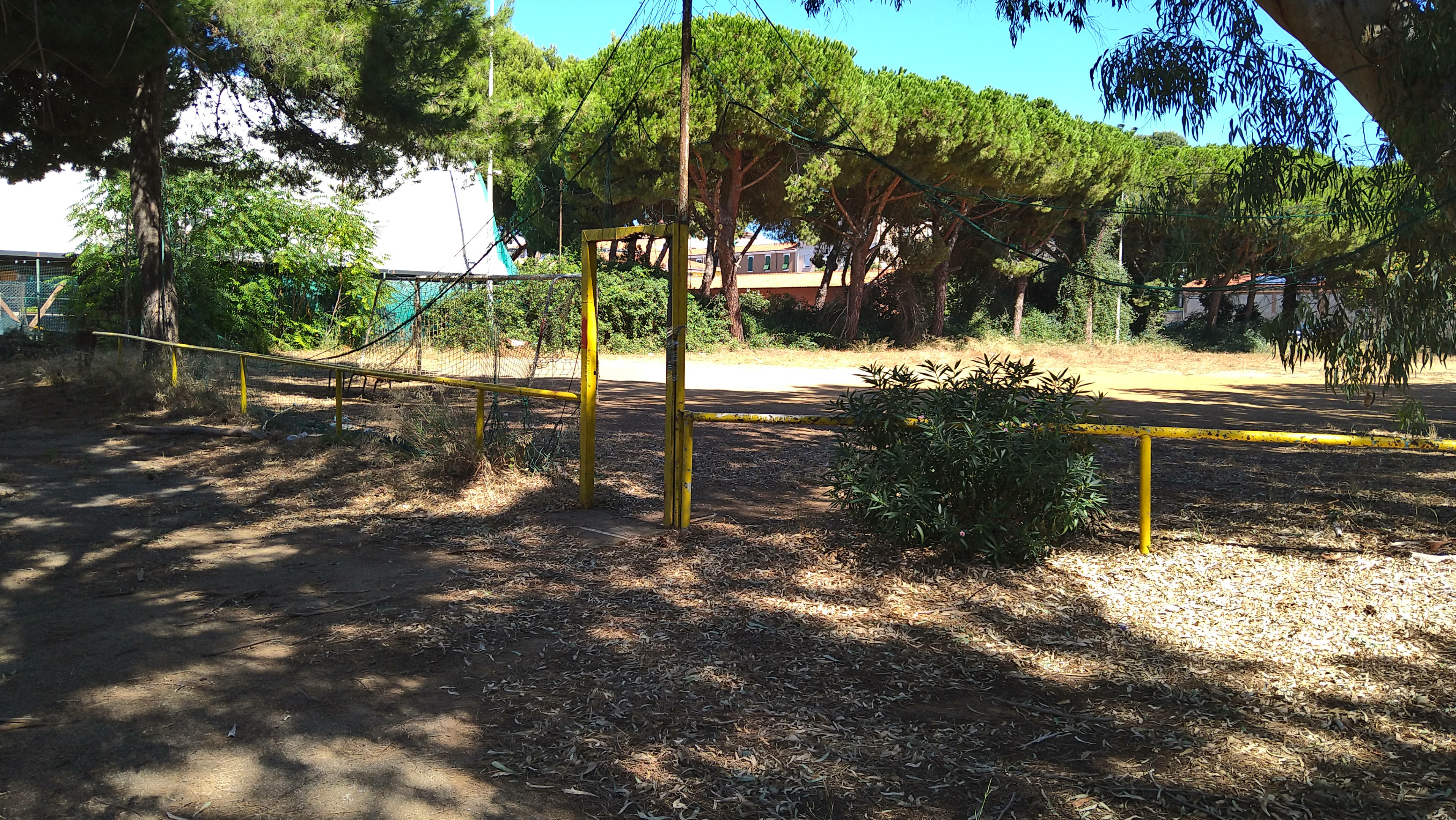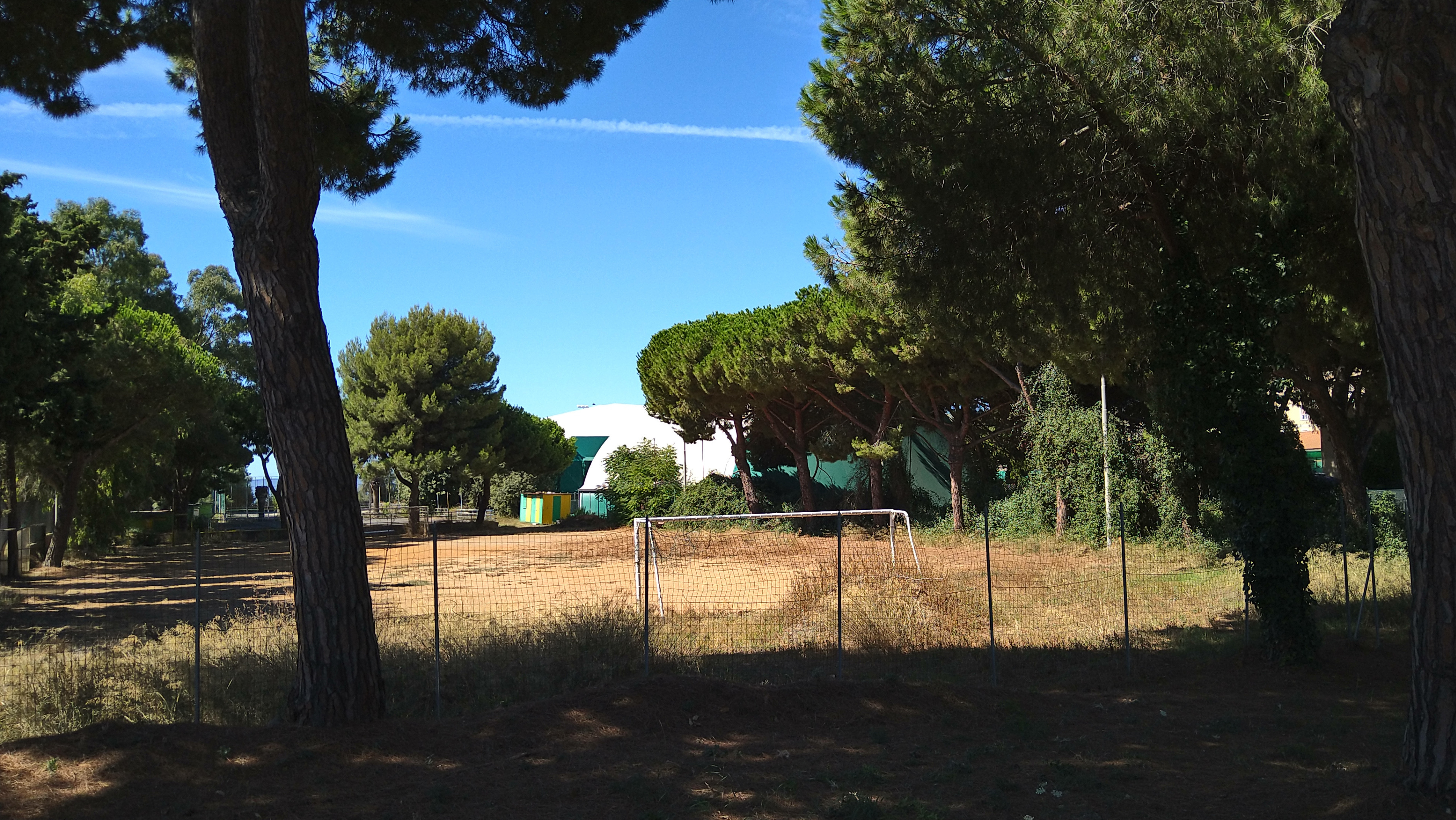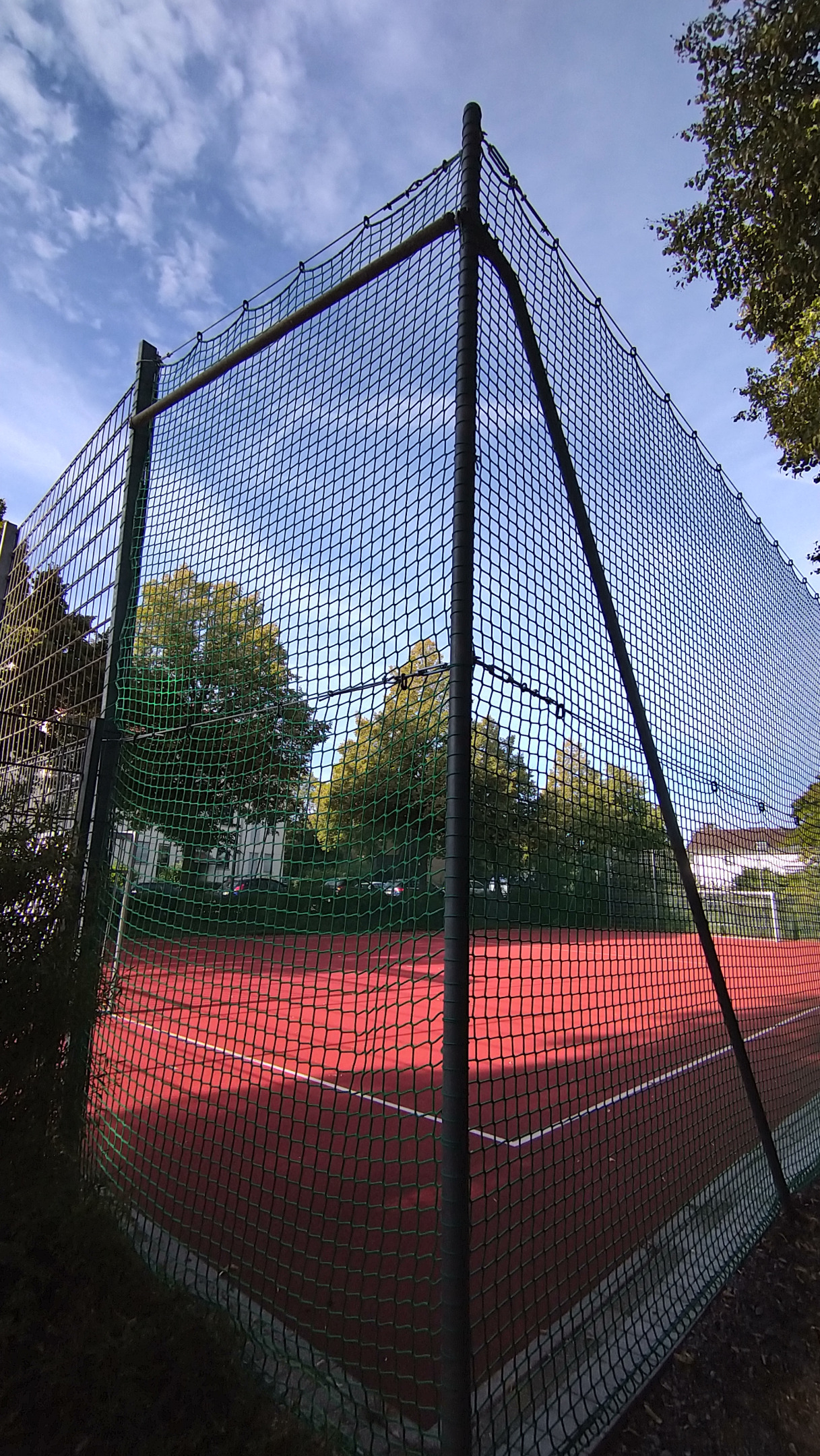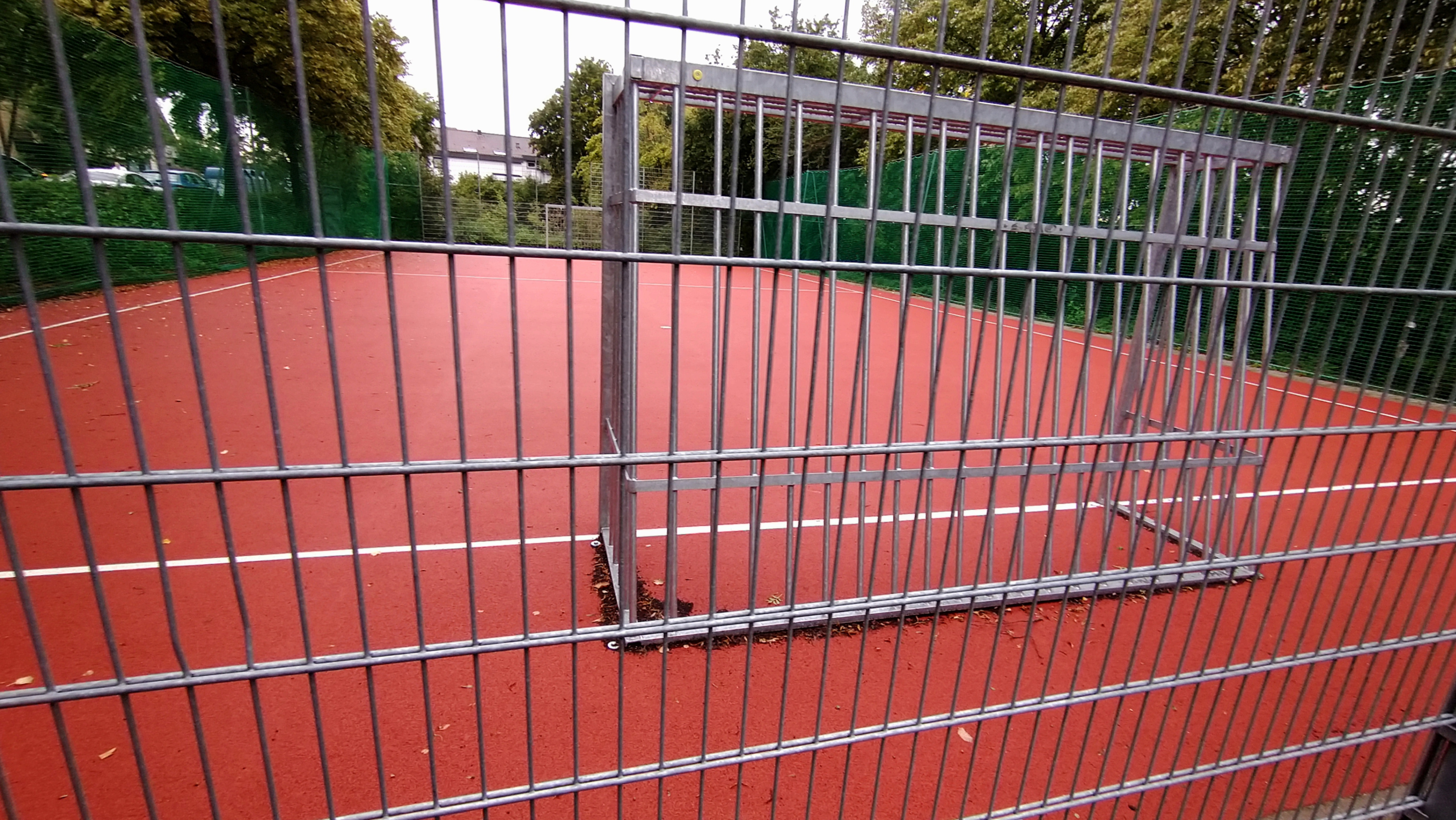 Öffnung Richtung EckFahne am AußenZaun, musste man des öfteren in die Büsche & Richtung GlemsTal, um das SpielGerät wiederzufinden. Abhilfe schaffte dann die eigens entwickelte Holz-und TaschenTechnik by BWK!