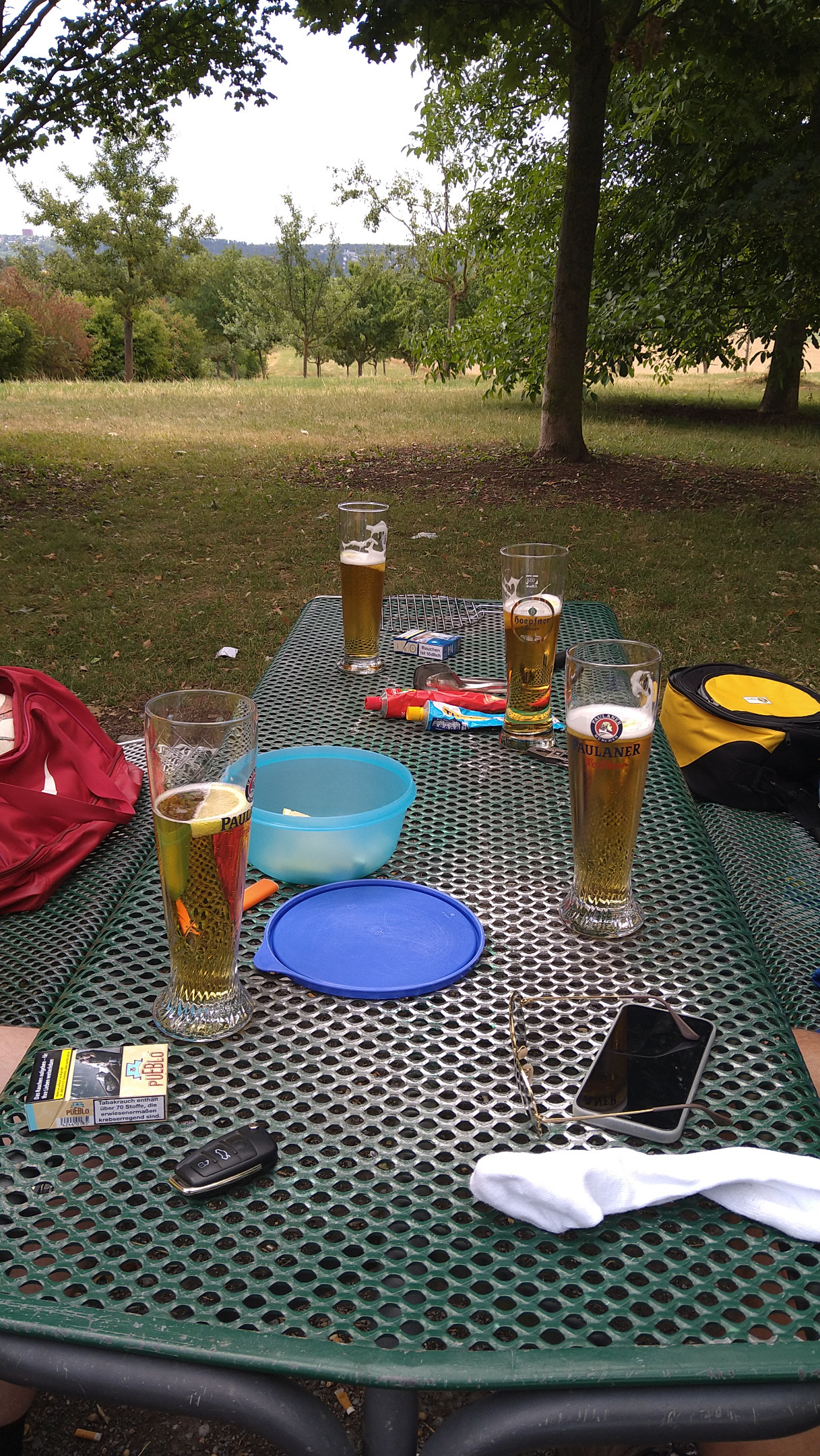 während OJ im Poppeltal nach Regeneration suchte, verweilten die 3 anderen BWK`ler aufm KickPlatz & gönnten sich wohl paar Weißwürschd....scheint wohl im September noch mehr zu schmecken ;-)