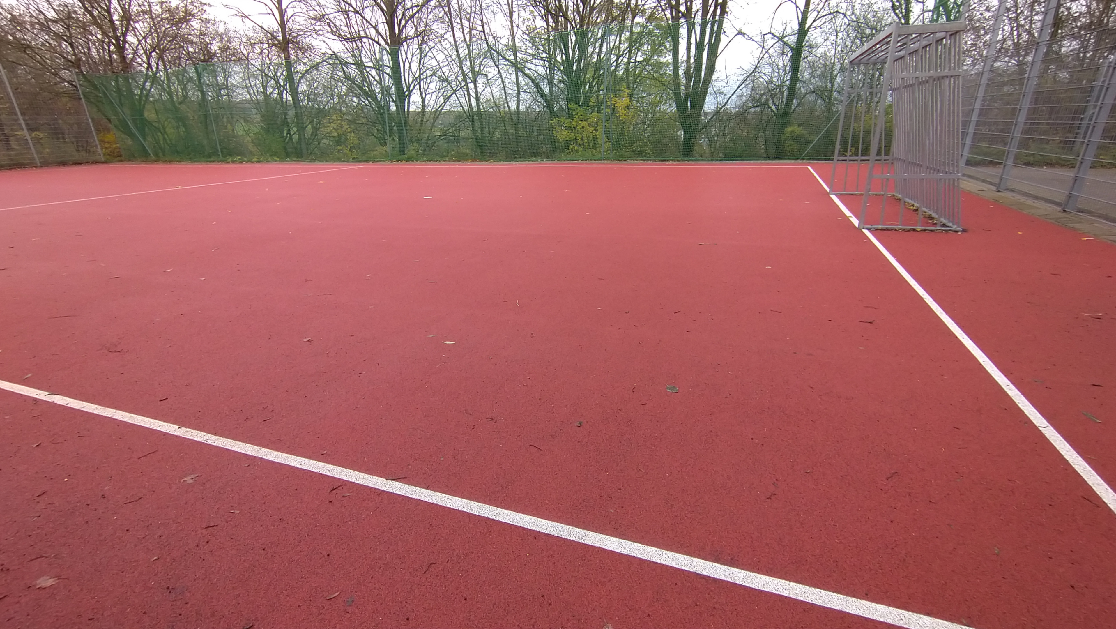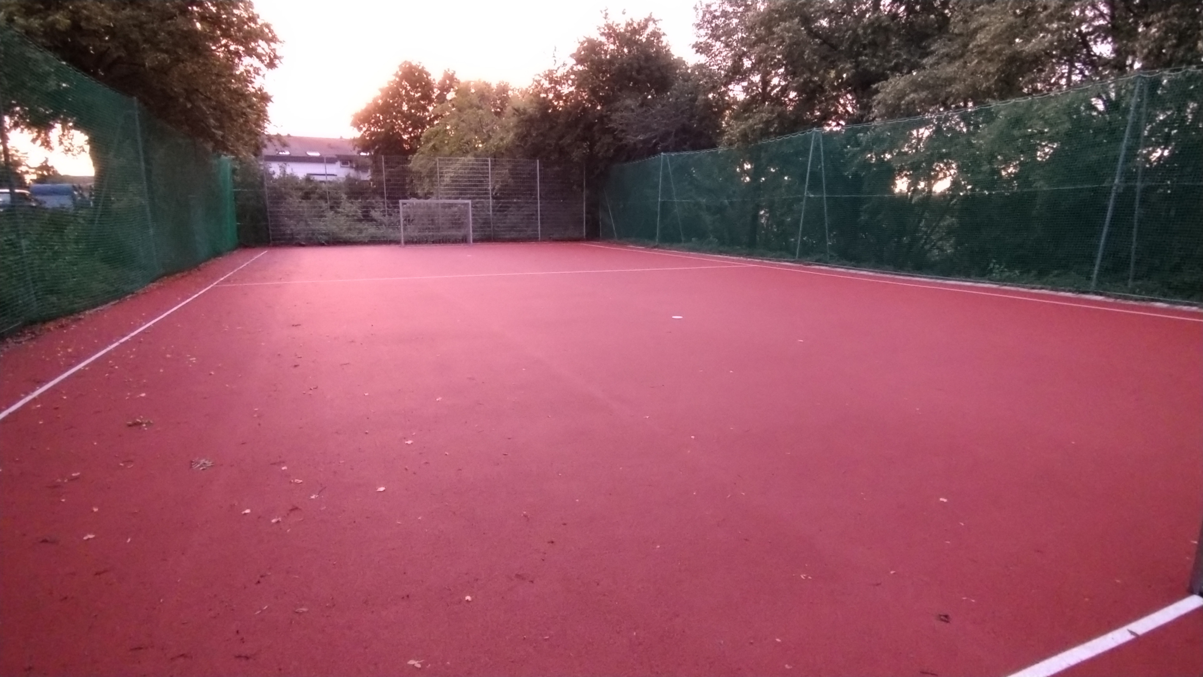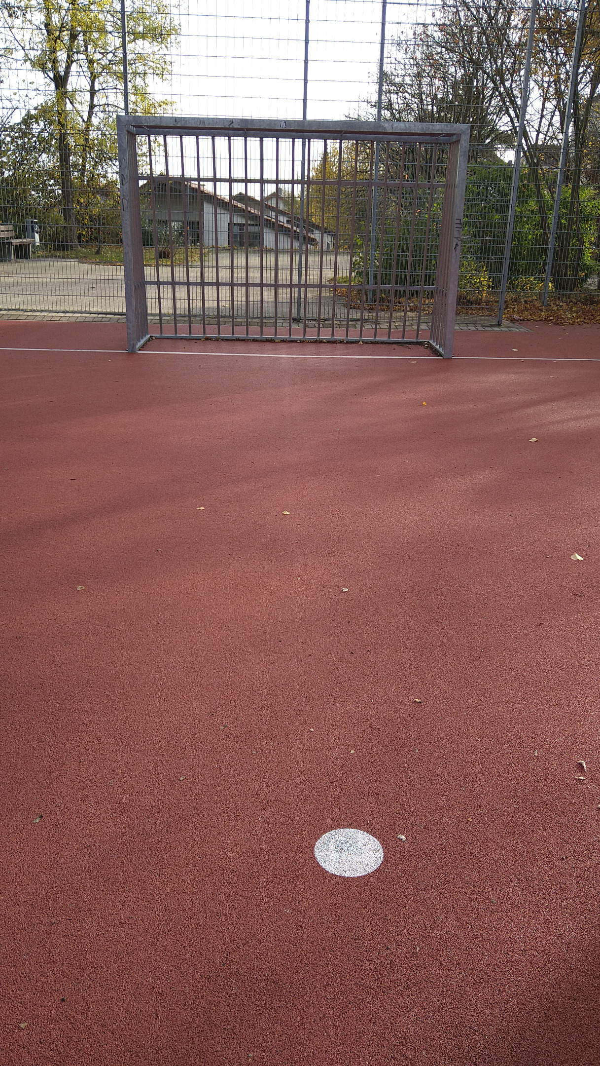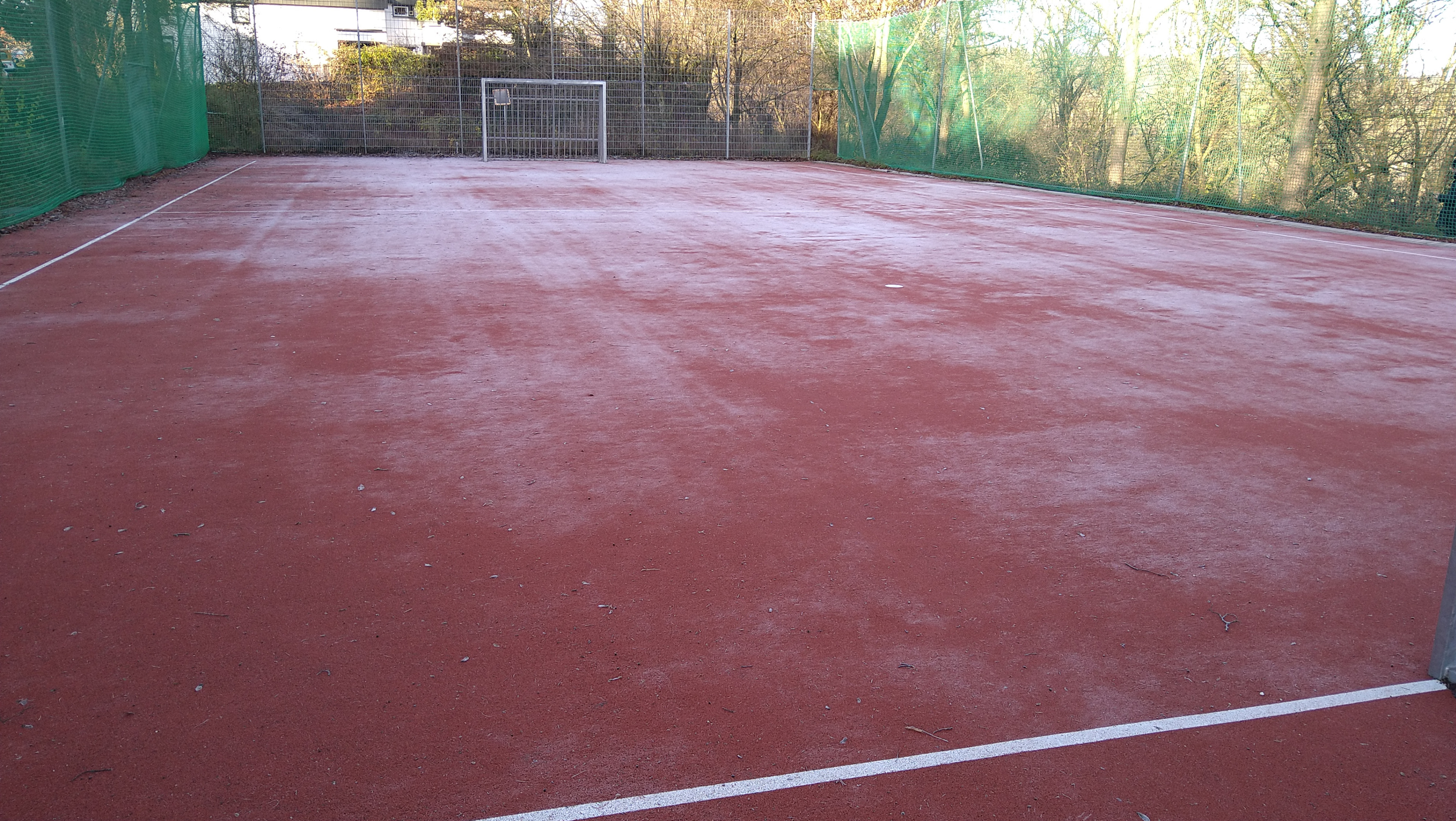 sieben Tage später & die Temperaturen waren wieder im PLUSbereich, somit hatte auch der Schnee keine Chance und die aktuelle HeimspielStätte lies wieder einen roten Untergrund aufblitzen --> da fühlt sich die AH gleich sicherer unterwegs, die GehHilfen rutschen nicht weg, die Linien auf dem Boden lassen erahnen wo das Tor steht & die nicht-mehr-vereisten AußenNetze des Platzes können Einen vielleicht noch besser auffangen ;-)