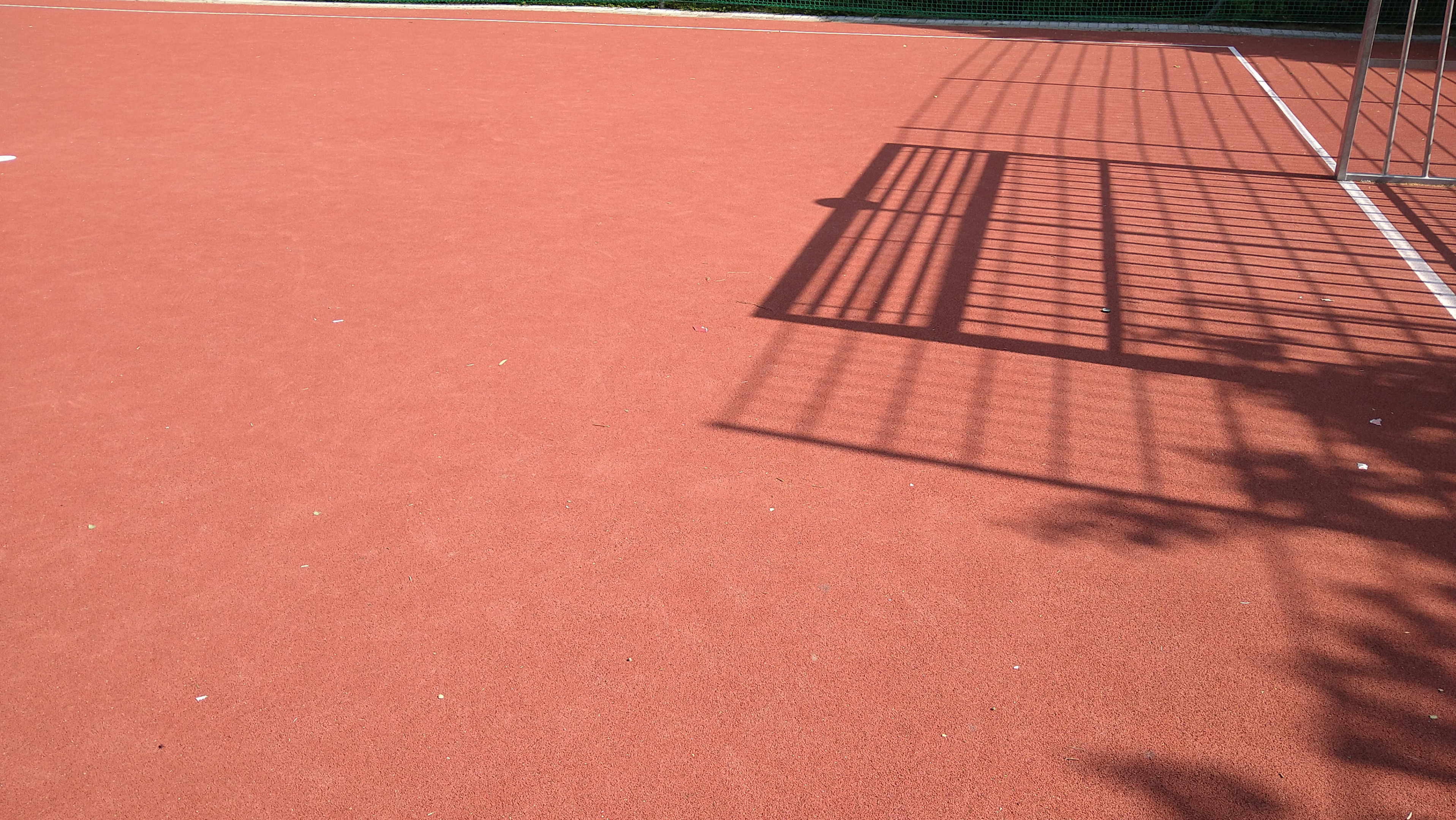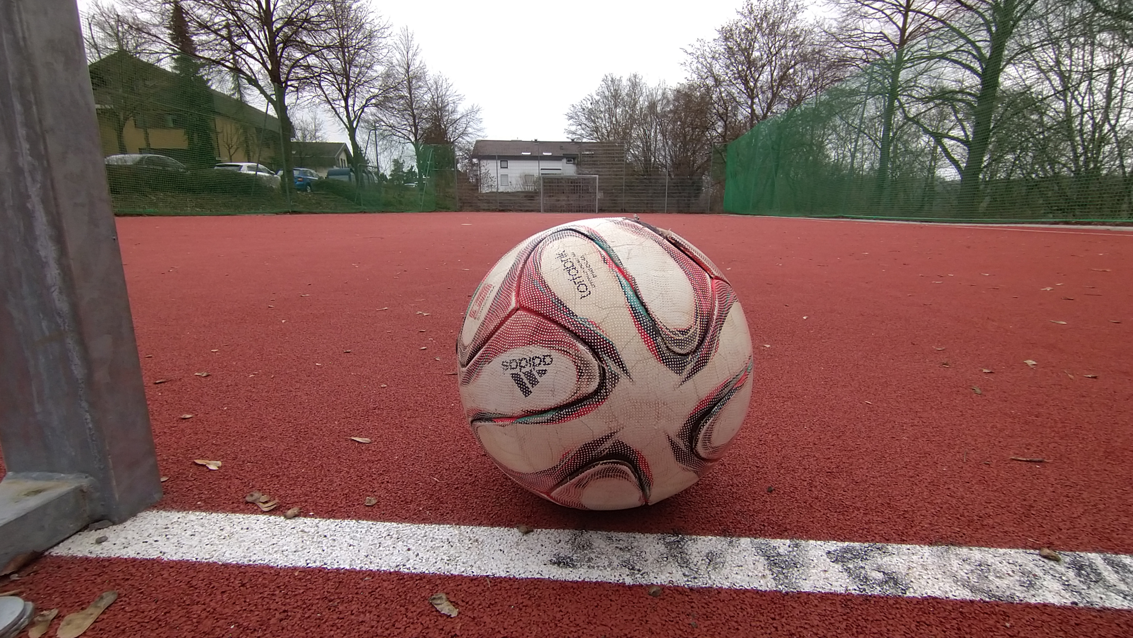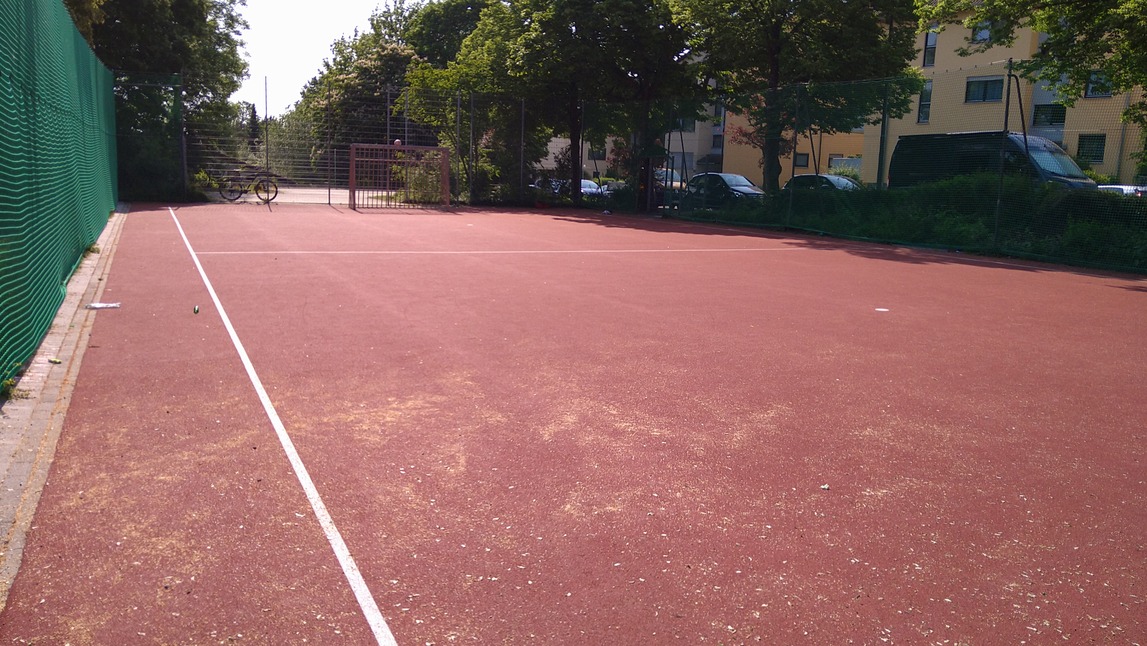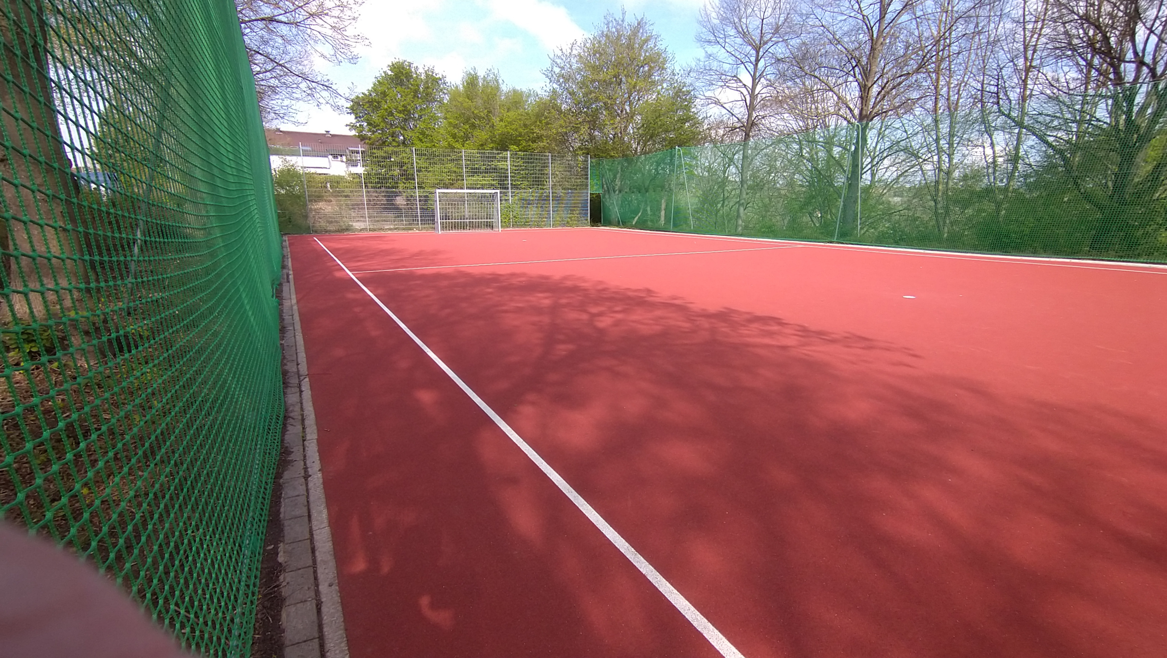 sieben Tage später & die Temperaturen waren wieder im PLUSbereich, somit hatte auch der Schnee keine Chance und die aktuelle HeimspielStätte lies wieder einen roten Untergrund aufblitzen --> da fühlt sich die AH gleich sicherer unterwegs, die GehHilfen rutschen nicht weg, die Linien auf dem Boden lassen erahnen wo das Tor steht & die nicht-mehr-vereisten AußenNetze des Platzes können Einen vielleicht noch besser auffangen ;-)