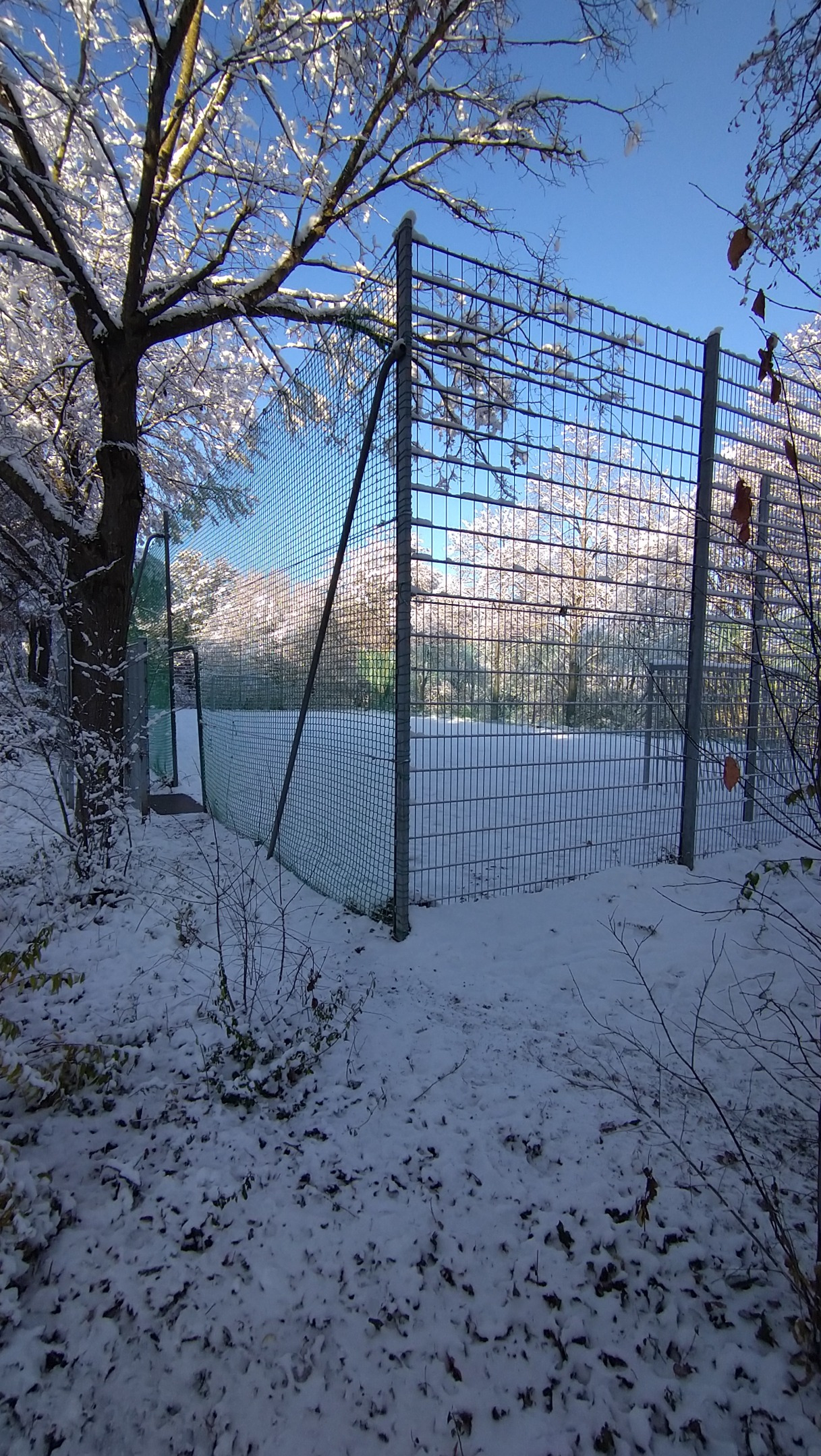 die starken WetterSchwankungen zur aktuellen JahresZeit bereiten auch den KickAzz teils schlaflose Nächte, da man nie vorhersehen kann, ob ein SonntagsKicK stattfindet...in der Nacht zum 17.12.2023 zog wohl eine FrostWelle über den HaldenKäfig, sodass eine Begehung am Sonntag-morgen zur Entscheidung kam, dass der Platz nicht "ohne VerletzungsSorgen" bespielbar wäre - in München wäre das match abgesagt worden, doch selbst mit dem smarten BWKbudget kann man auch auf andere BolzPlätze ausweichen...die winterlichen SommerStrahlen scheinten zu diesem ZeitPunkt perfekt auf den DitzingerAcker, damit war der BENZ gerettet ---> Mars,Markster+OJ fanden besten Halt auf dem BlätterFrostigenUntergrund, Vorsicht war nur auf den AußenBahnen geboten <---