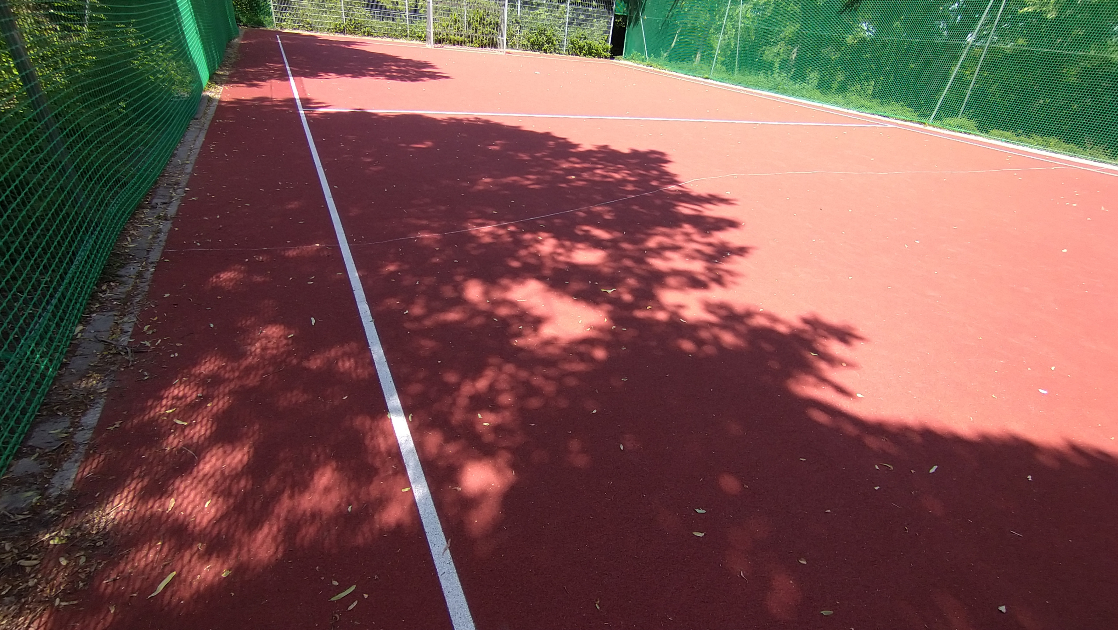 und gleich der nächste SpielerWechsel - im etatmäßigen 4MannKader ist mehr Rotation als bei den ganzen Transfers in der Bundesliga - so tauschten Blüm+Marksters Ihre Plätze, sodaß der Platzwart am frühen Morgen gleich mal TEMPO-Linien ziehen konnte...doch bis der mit KlassikMusik_beschallteCabrio endlich mal einparkte, mussten Mars+OJ mal wieder so einige DoppelPässe auf den Tartan bringen - immerhin gabs um 10 scho eine feine SchattenSeite, denn im SonnenStrahlenBereich des HaldenKäfigs stieg die Temperatur abartig schnell in die Höhe.