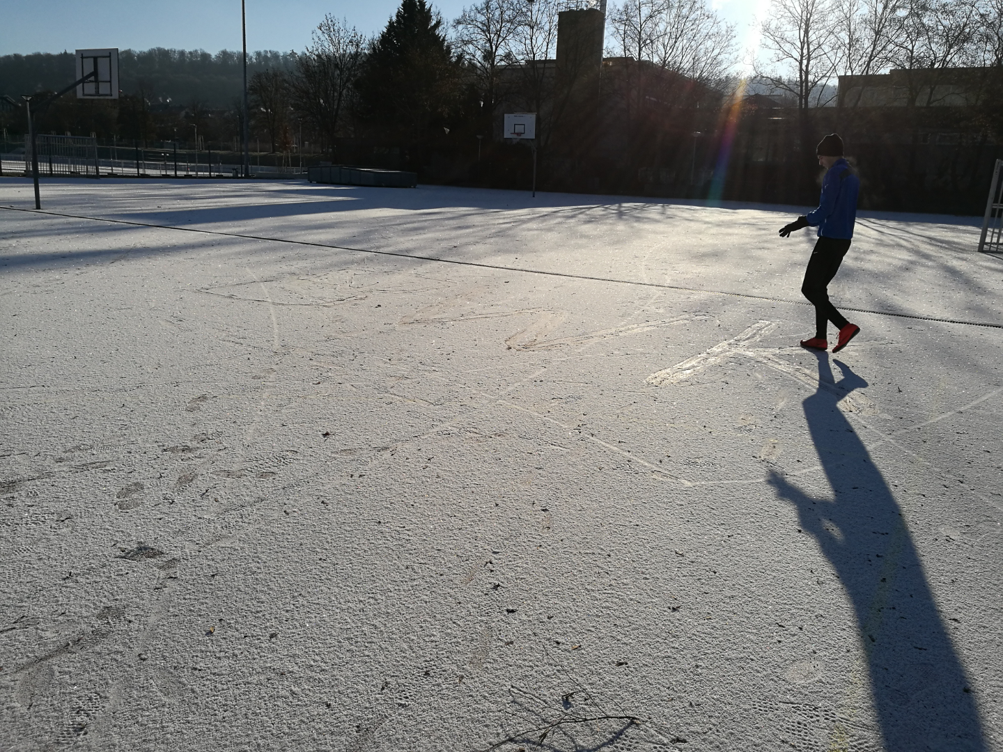 26.11.2017 nach fast 1 Monat FußballFastenZeit ging es endlich mal wieder auf den KickPlatz - bei den ersten MiniSchneeFlöckcken, welche in diesem Winter zu sehen waren, fanden sich immerhin ZWEI player im BreitWiesen ein....so fabrizierten Mars+OJ ein Penalty-Training & paar DistanzSchüsse auf`m Tartan, bevor dann die Einheit rüber zum KunstRasen verlegt wurde; hier galt es außerhalb des 16ers auf die große Kiste zu ballern - dabei kamen einige TraumTore & GlanzParaden zu Stande; nach zwei Runden ElfmeterContest hätte man sich gern noch an der ImbißBude gestärkt, doch die WerbePlakate hielten nicht Ihr versprechen :-(