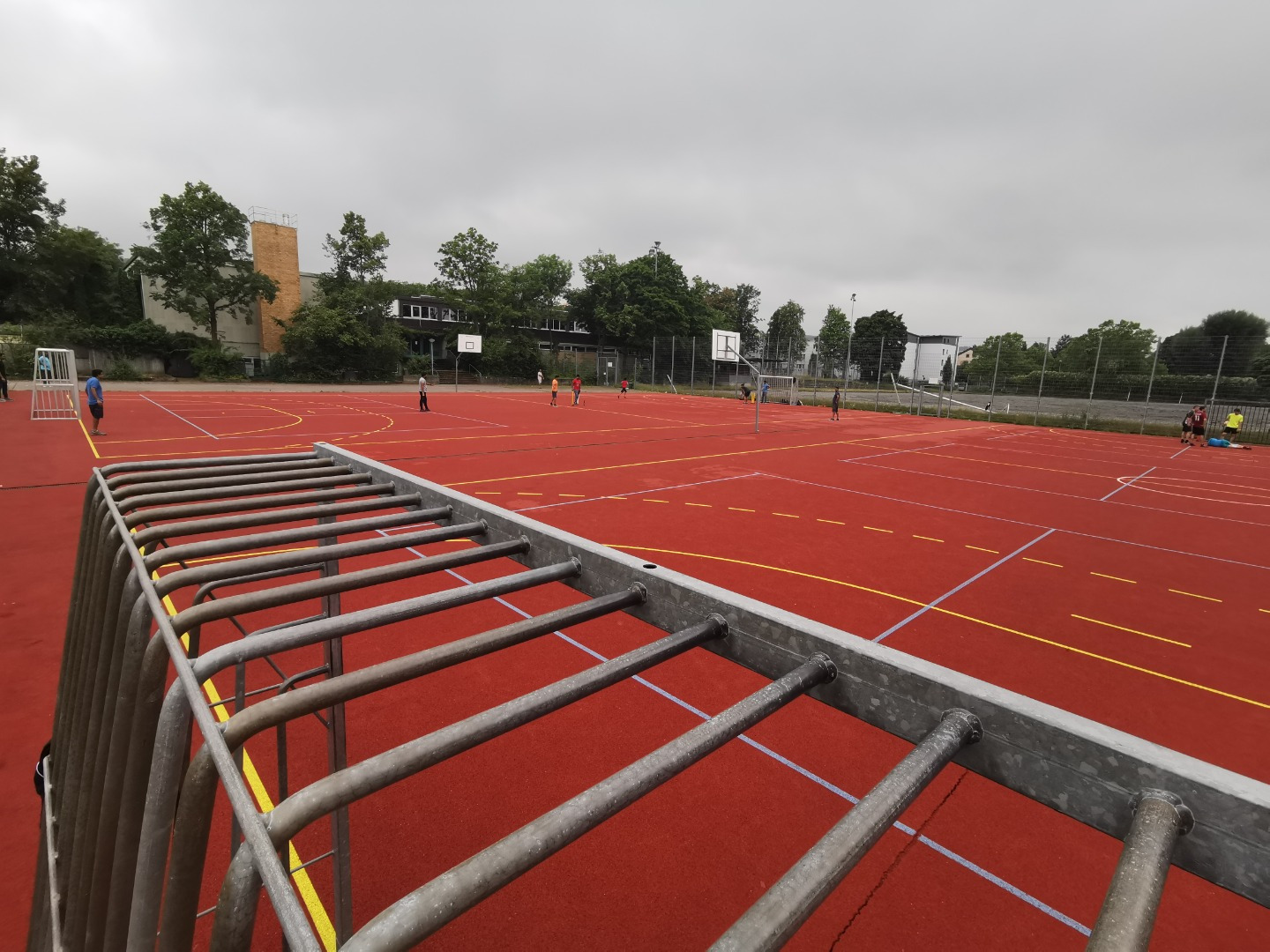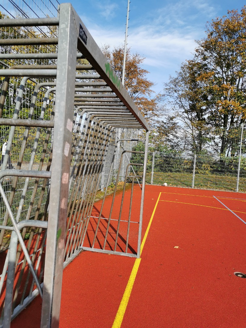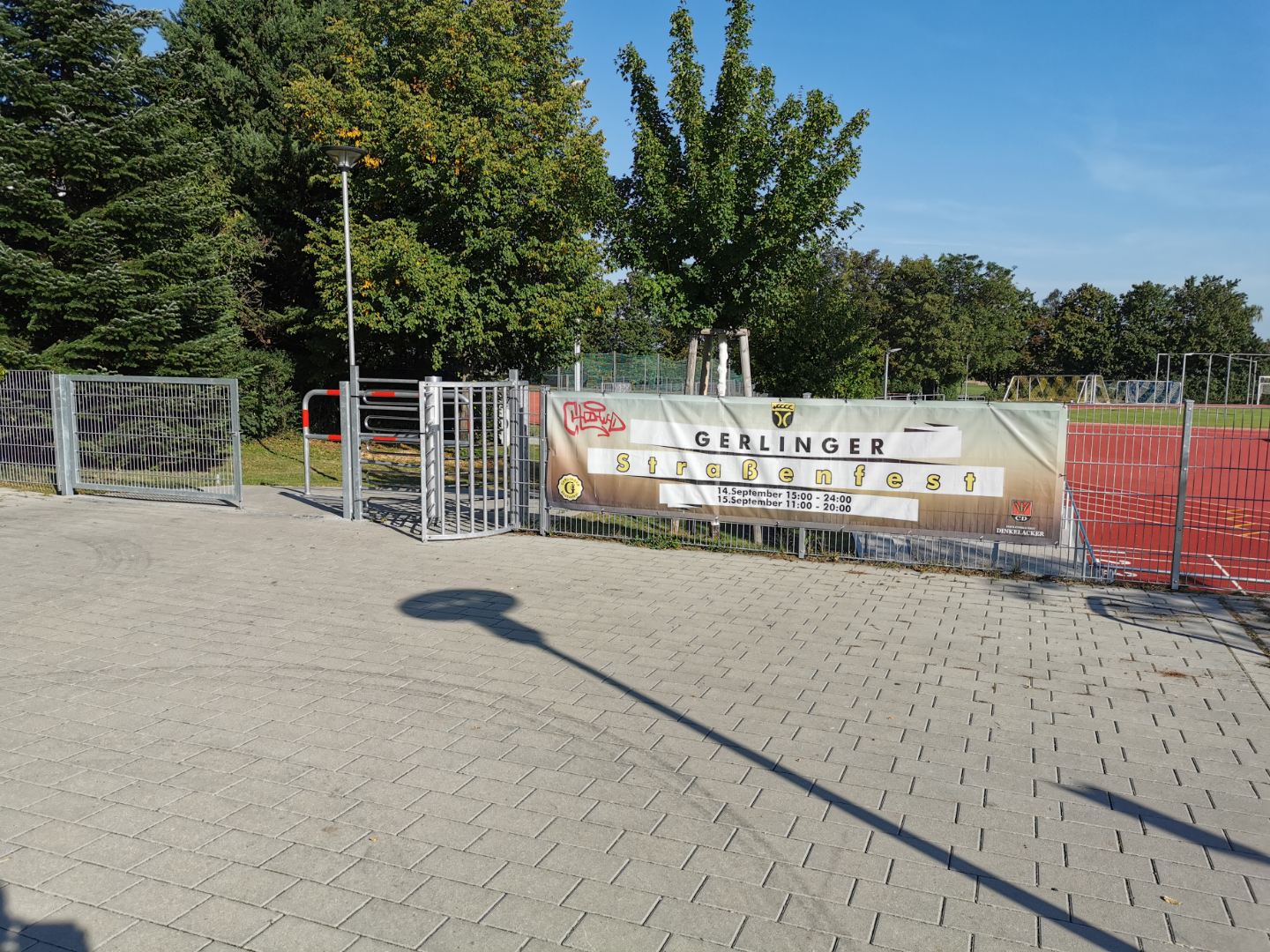 28.07.2019 da der StammPlatz an diesem Morgen durch Ausläufer des BoschCricketTeam in Anspruch genommen wurde, spielte man mit dem Gedanken in den Käifg (welcher wohl in naher Zukunft einen hohen StellenWert im GerlingerFreizeitFußball einnehmen wird) auszuweichen - dieser wurde zwar nicht von der SüperLig in Anspruch genommen, doch nach dem deftigen Gewitter vom Vortag, war das Geläuf nahezu unbespielbar, die seifigen Außenbahnen hätten wohl nur Opfer gefordert. Aufm Weg in die untere Arena konnte das neue SicherheitsKonzept begutachtet werden...