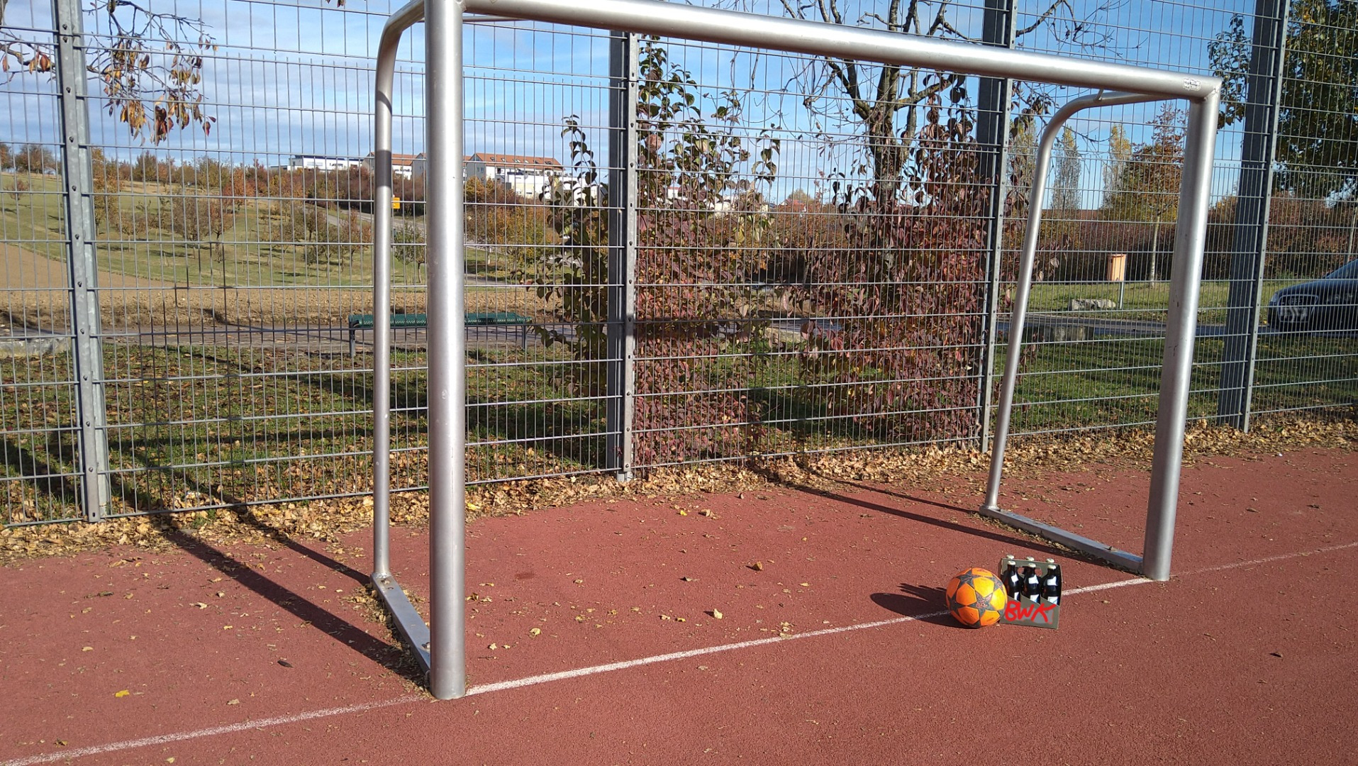 31.10.2021 mit dem letzten Sonntag im Oktober mussten die Uhren um 1Stunde zurückgedreht werden - in Sachen "fitte Sportler" eigentlich eine feine Angelegenheit, doch MisterBlüm wurde bereits weit vor Anpfiff vom Nachwuchs warm-trainiert, sodaß der BWK-Spieltag auf der Kippe stand - zumal auch der Ditzinger Hausmeister seinen Job vernachlässigt hatte ==> Geläuf war mit HerbstLaub übersehen, TEMPO-Linien nicht gezogen & Getränke standen nicht parat --> somit mussten die anwesenden Spieler (mal wieder/wie immer) alles selbst erledigen. Mit dem ersten Schuss aufs Gehäuse war dann aber der Stress am Morgen vergessen & die Dinger schlugen Einer-schöner als der-Andere am-und im Kasten ein. Durch sein Gelenk-handicap parierte Blüm als keeper nicht mit seinem üblichem KungFuStyle, sodaß er öfters als Mars+OJ die Kugel ausm Netz holen musste. Zwischendurch fabrizierte er noch einen lupenreinen OverTheFence-Hattrick, welchen er gar noch selbst mit einem vierten Überschuss in Folge toppte - ganz klar wer den ZaunKönig an diesem Spieltag eintütete - immerhin landeten die Bogenlampen fast Alle an der gleichen Stelle im frisch geernteten Acker ;-)